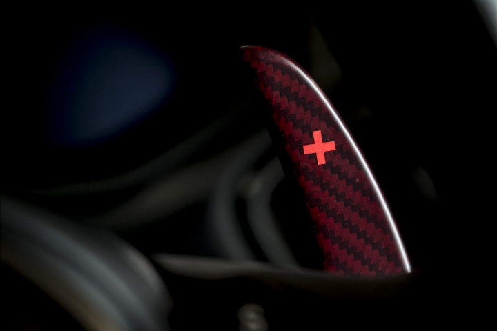 To whit, they're all painted Olive Green, with carbon fibre used for the front splitter and aero blade, while diamond-turned and forged alloy wheels reside in the arches. A bespoke metal grille with six bright, horizontal vanes reminds owners of the original film's DBS, while commemorative side strakes and touches inside proclaim the Superleggera to be an OHMSS special edition. Talking of the cabin, the interior is trimmed in pure black leather, teamed to grey-blend Alcantara - this again echoes the cinematic machine. Red accents are a link to the red-trimmed glovebox in the original car, which (in the film) held Bond's telescopic-sight rifle.