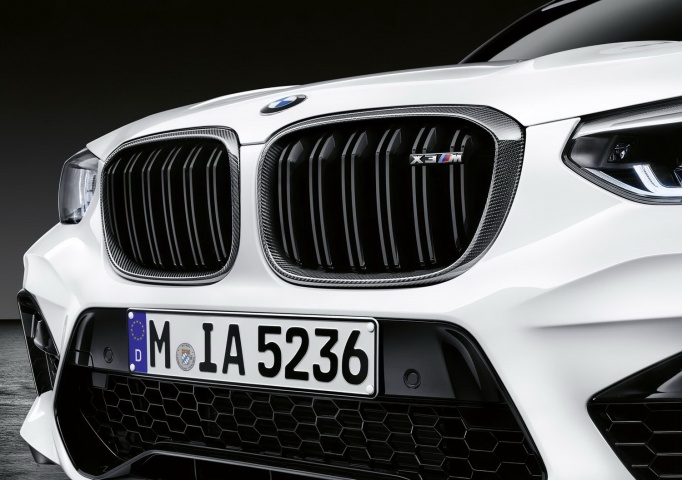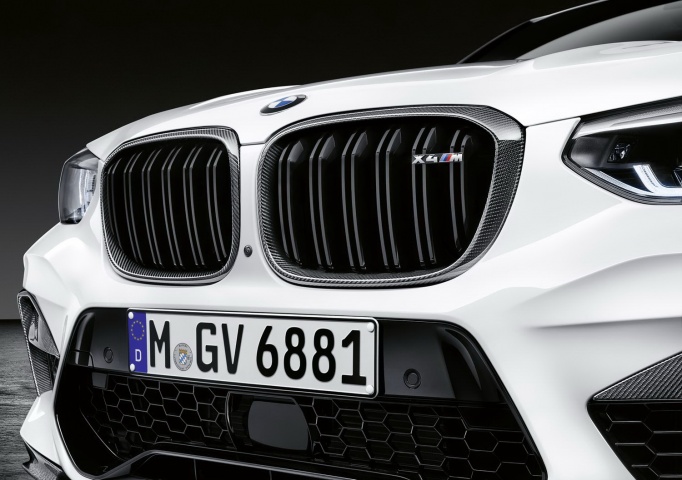 These upgrades are available for the 510hp Competition models only, and comprise items like high-gloss carbon-fibre exterior parts - such as the kidney grilles, the air breathers near the wheels and the door sills - while either the X3 M's roof edge spoiler or the X4 M's rear fins can be finished in high-gloss black. LED door projector mirrors with M Performance motifs and 'M Performance' decals can also be specified.