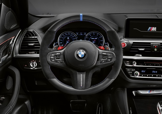 Alongside the exterior and interior styling elements, the M Performance items for the BMW X3 M and X4 M models includes a key case in Alcantara with carbon fibre, while M Performance wheel bags are available for the transportation of the light-alloy wheels; this last feature is more for markets (such as BMW's home one of Germany) where laws dictate two sets of tyres must be used throughout the year, according to the seasons.