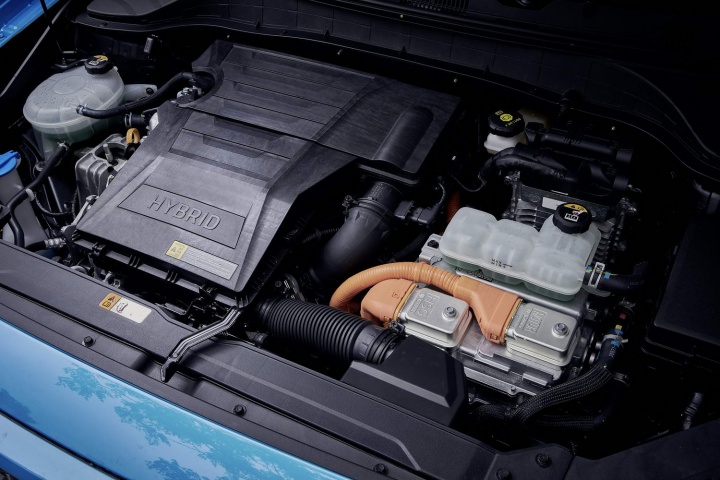 Powering the electrical half of the drivetrain is a 1.56kWh lithium-ion battery, with the total outputs of the Kona Hybrid maxing out at 141hp and 265Nm. The top speed is restricted to 160km/h, with 0-100km/h coming up in 11.2 seconds on the standard-fit 16-inch wheels (11.6 seconds on optional 18s). Expect 3.9 litres/100km (72.4mpg) on the 16s (4.3 litres/100km, or 65.7mpg on the 18s), with CO2 rated at 90g/km (99g/km on 18s). Power goes to the front wheels via a six-speed dual-clutch autopmatic transmission.