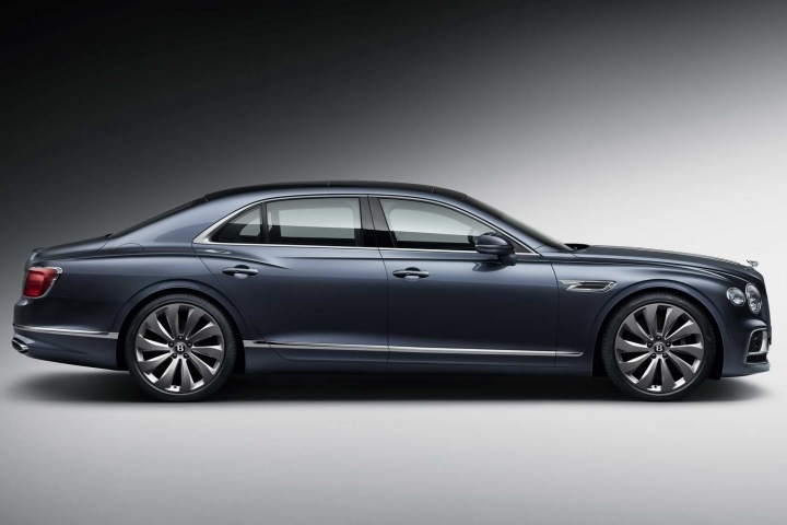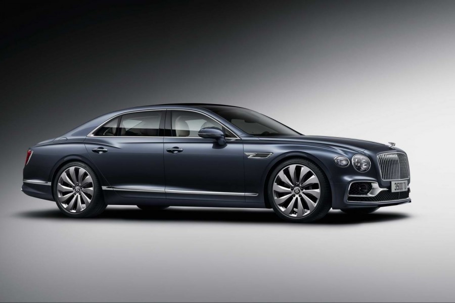 Underneath, the chassis uses a combination of superformed aluminium and high-strength steels (as used by the Continental GT) for high stiffness but lower weight. It uses 21-inch wheels as standard, but 22-inch 'Mulliner' wheels are an option. Other styling touches include a 'Flying B' bonnet mascot that folds away and a radiator grille with a mixture of gloss black, chrome and vertical vanes that harks back to the original 1957 Bentley S1 Continental Flying Spur.