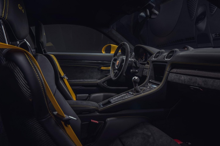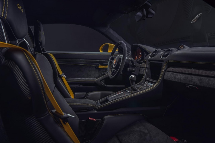 Anyway, wherever it has come from, rejoice. It delivers 420hp, which is 35hp more than the old Cayman GT4 and 45hp more than the old Boxster Spyder. This is backed up with 420Nm of torque from 5,000-6,800rpm, with a rev limiter at a giddy 8,000rpm. In the Spyder, you're looking at 0-100km/h in 4.4 seconds and a top speed of 301km/h; no equivalent figures for the GT4 have yet been revealed, although they'll be very, very similar. Fuel consumption is rated at 11.0 litres/100km (25.7mpg) and CO2 emissions are pegged at 249g/km, thanks in part to the fitment of Adaptive Cylinder Control, which can restrict fuel injection on one cylinder bank under part-throttle loads; that means the hottest 718s will run on three pistons when required.