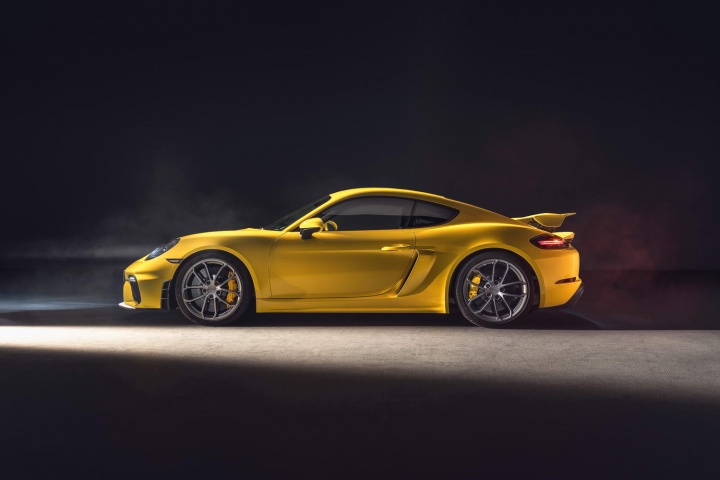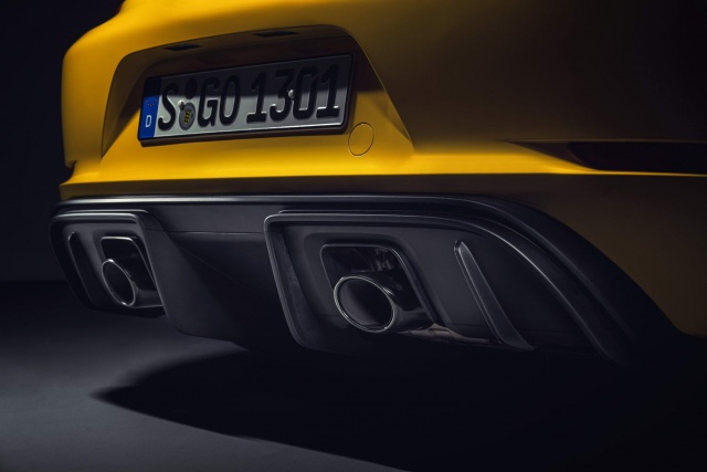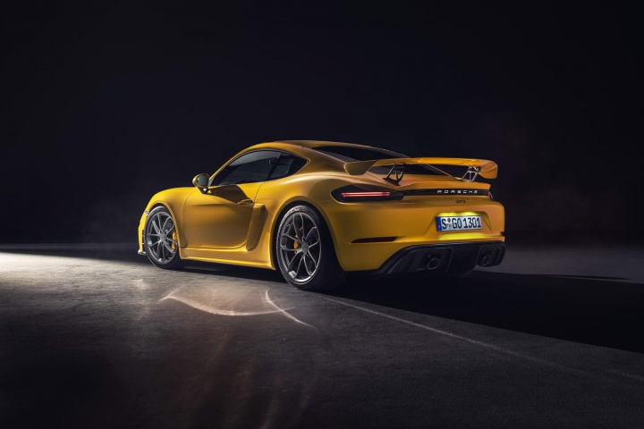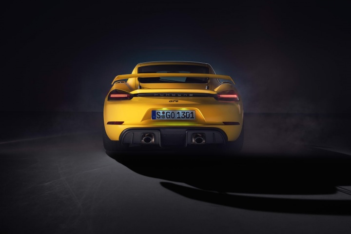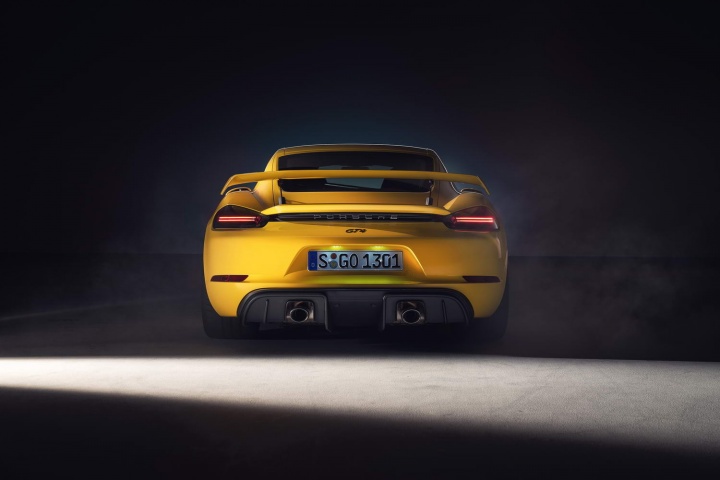 For the 718 Cayman GT4, a full aerodynamic kit adds up to 50 per cent more downforce than the regular/S/T/GTS variants, without increasing drag. This is because a 'single-chamber arch rear silencer' creates space in the rear underbody for a functioning diffuser, generating up to 30 per cent of the rear downforce of the GT4. A fixed rear wing up top also generates an additional 12kg of downforce at 200km/h over the one on the previous Cayman GT4.