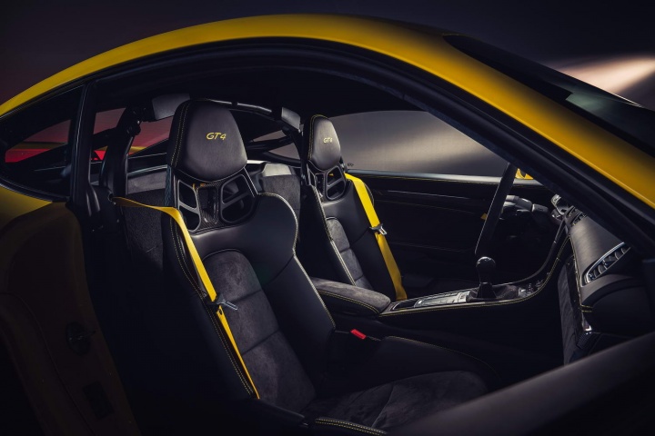 The Spyder, meanwhile, has a lightweight fabric roof that can cope with the car's high top speeds. Unlike the GT4, the Spyder's rear spoiler raises automatically at 120km/h, but it retains the rear diffuser. Both cars also have the same chassis set-up, developed by Porsche's fabled GT department. Items such as ball-joint suspension links, a 30mm-lower Porsche Active Suspension Management (PASM) damping system and Porsche Torque Vectoring (PTV) with a mechanical rear limited-slip diff should make both sharp handlers, but the GT4 also can be had with an optional Clubsport package: this sees the addition of a rear steel roll cage, a hand-held fire extinguisher and a six-point seatbelt on the driver's side.