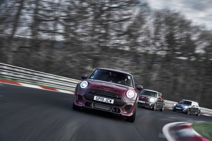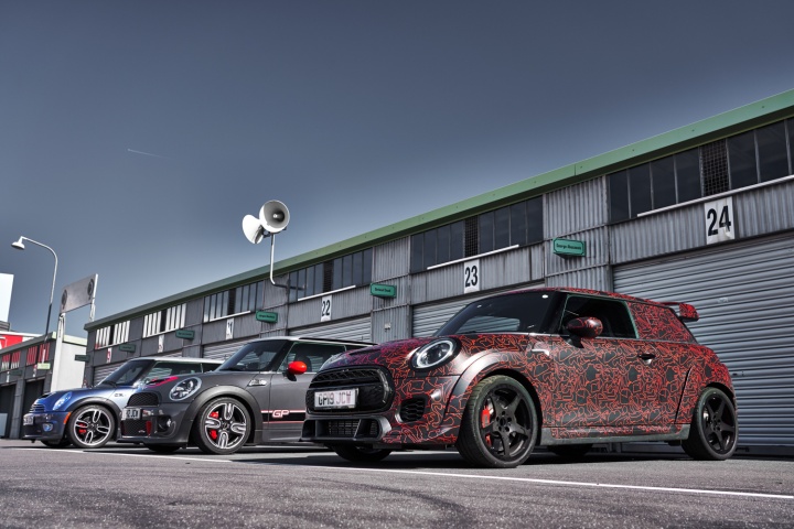 MINI is happy to confirm that the GP has a 'high-power engine', model-specific suspension technology and 'precisely defined' aerodynamics, so much so that while its immediate predecessor went round the Green Hell in 8m 23s, the new one - still in prototype guise, remember, with lots of fine-tuning on its chassis to come - has apparently already smashed the eight-minute barrier. Cripes!