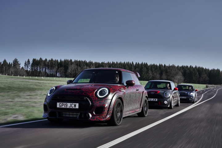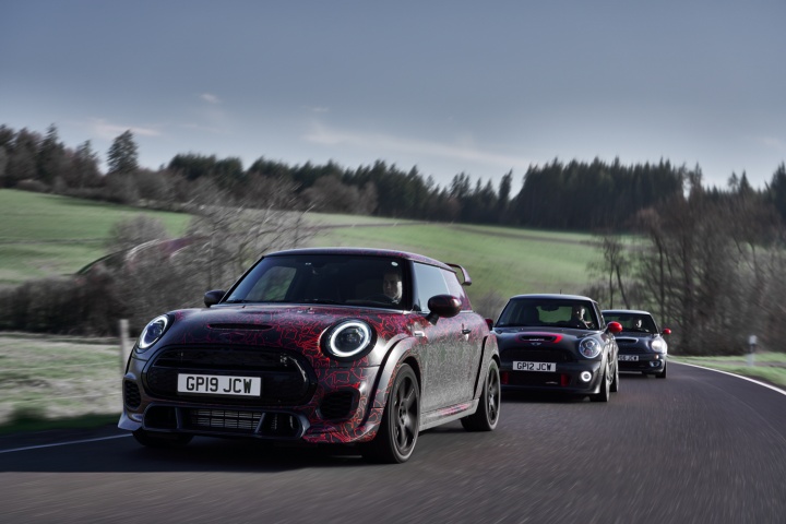 So far, all MINI will say about the GP3's powerplant is it will be a TwinPower Turbo four-cylinder motor with 'more than 300hp'. We know fine well that it's the engine already used in the X2 M35i, which has been confirmed for the non-GP versions of the JCW Countryman and Clubman models - in those applications, it makes 306hp. Normally, the GP is a teensy-tiny bit more powerful than its contemporary stablemates, so either the GP3 will have 306hp but a huge weight reduction programme to make those horses count for a little more, or it might even be edging towards 320hp. Imagine that; a 320hp MINI...