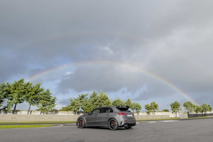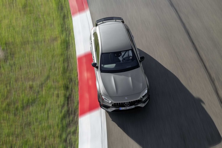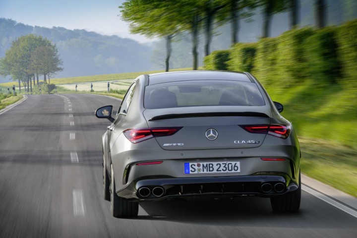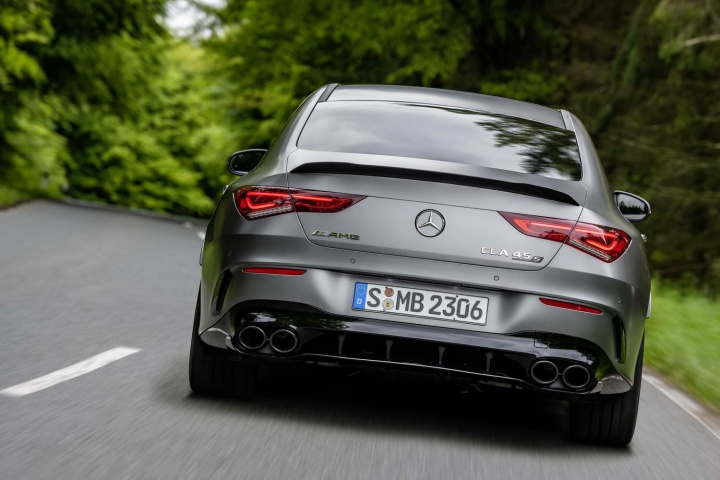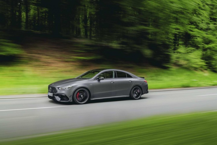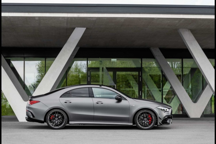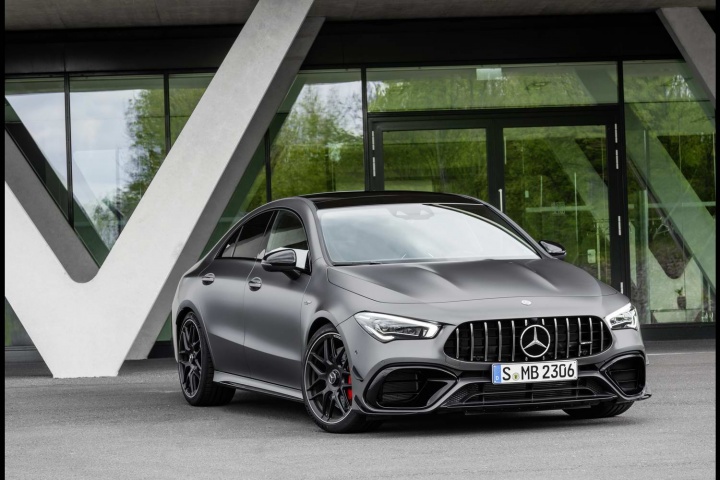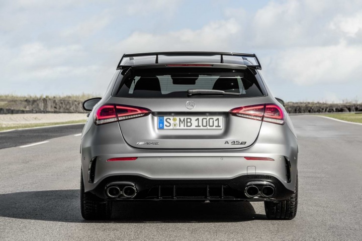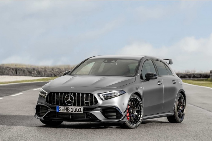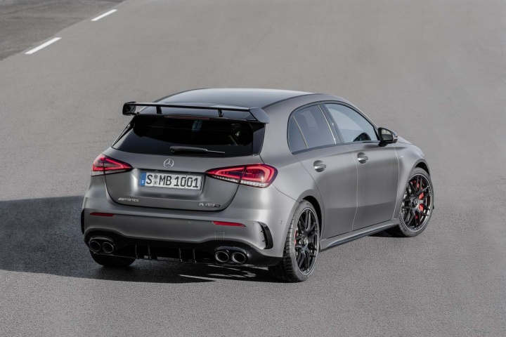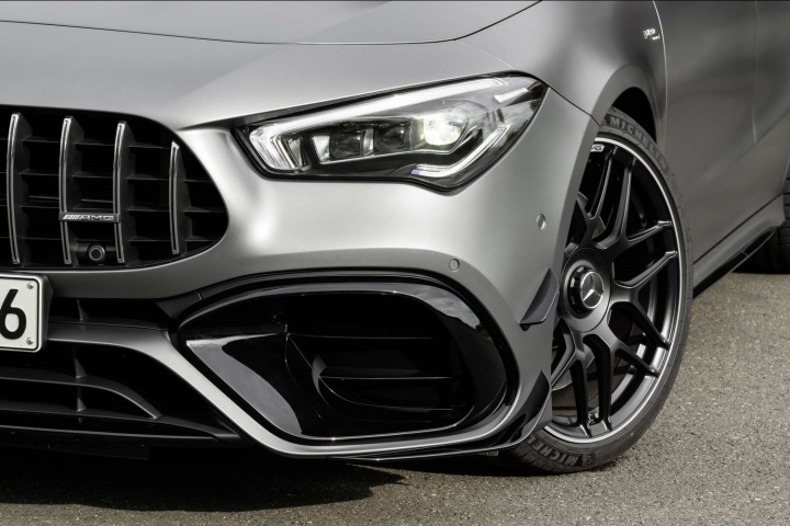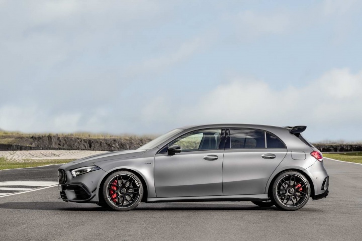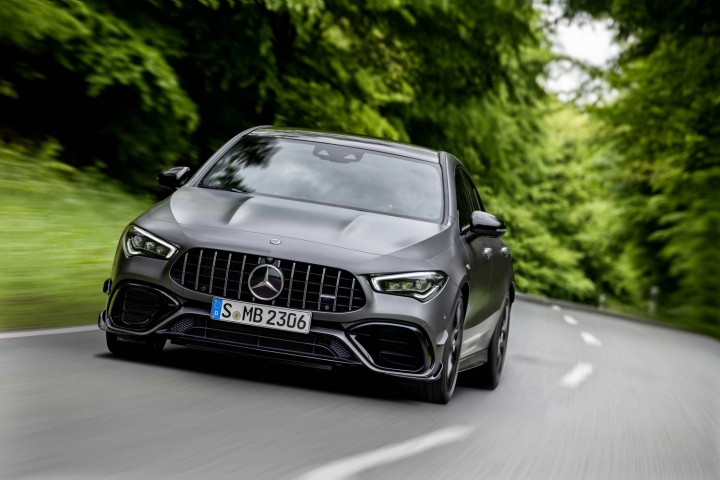 There are actually four '45s' being released here: the A 45 and CLA 45, and then the A45 S and CLA 45 S. All of them use a new 2.0-litre four-cylinder turbocharged petrol engine, which is more powerful than the preceding A/CLA 45 models, even in its lower specification. Here, it delivers 387hp and 480Nm, which - driving all four wheels through 4Matic+ all-wheel drive and a new eight-speed AMG Speedshift dual-clutch automatic - will see the A 45 hit 100km/h from rest in 4.0 seconds flat, while the CLA 45 is just a tenth behind at 4.1 seconds. But the A 45 S and CLA 45 S deploy the 421hp/500Nm iteration of the same powerplant, trimming their respective 0-100km/h times by a tenth of a second... yes, that means the A 45 hot hatch will run the benchmark sprint in less than four seconds, knocking in a ridiculous 3.9-second time. The 387hp 45s are limited to 250km/h, with an option to lift that to 270km/h with the AMG Driver's Package, while the 45 S twins are pegged to 270km/h as standard.