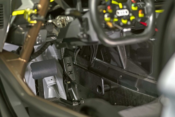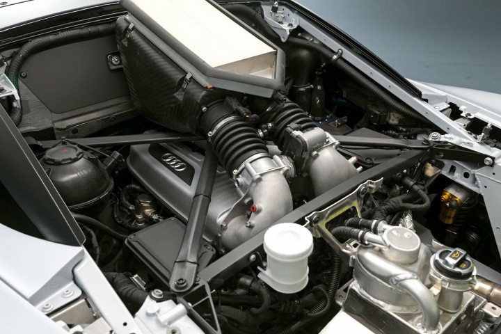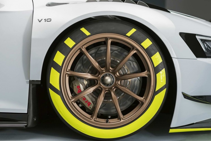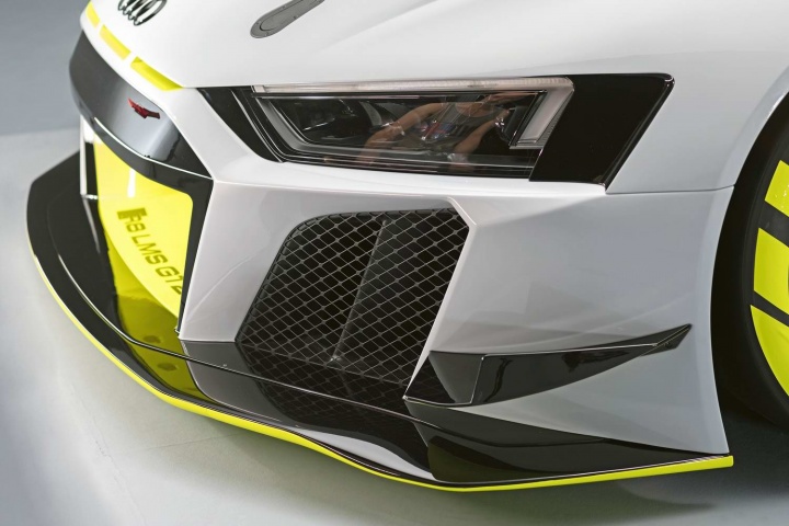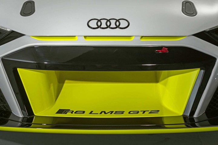 Powering the R8 LMS GT2 is what Audi says, is the most powerful evolution of its naturally aspirated V10 engine yet. The total power output of the 5.2-litre engine is rated at 640hp, or 123hp per litre, while torque is said to be more than 550Nm. GT3 regulations restrict that engine to 500hp, but there aren't the same limitations with the GT2 version. The lightened car weighs 1,350kg dry, making it 100kg less than the GT4 version, resulting in a power-to-weight ratio of 2.1kg/hp.