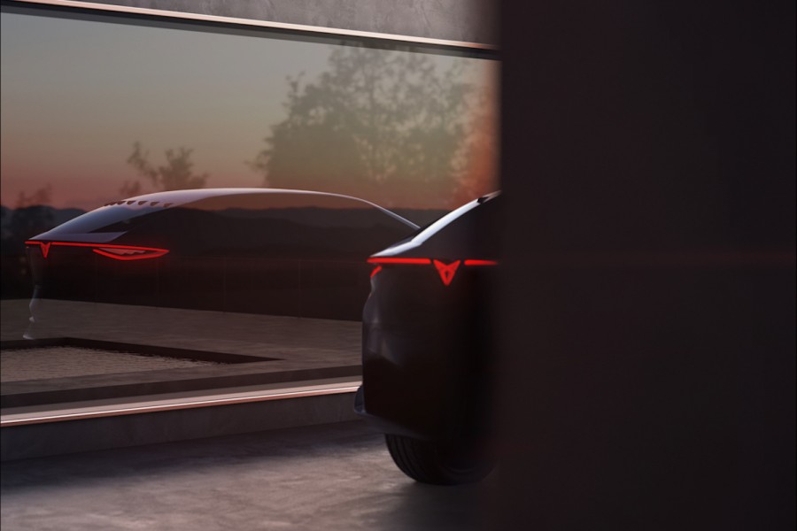 No name for the third Cupra as yet and no clear view of it, this glimpse of its rear (and reflected silhouette) showing off its coupe roofline, a full-width rear light strip... and yes, the stance and proportions of an SUV. That mean's SEAT's performance brand has, so far, given us three SUVs and crossovers, which won't please the purists.