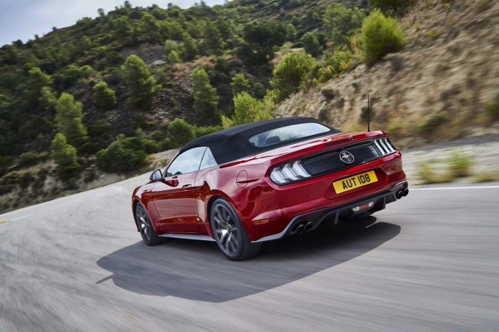 The 2.3-litre EcoBoost model isn't overlooked, though, as the four-cylinder Mustangs now gain styling features that have been seen on the Mustang Shelby GT350 and GT500 models through the decades. Look for door mirrors and a boot spoiler finished in Magnetic Grey, dissolve-effect black bonnet stripes, a Magnetic Grey California grille with the tri-bar pony badge seen on 1965 Mustangs and machine-finished 19-inch wheels. Mustang 2.3s, still available as Fastback or Convertible cars, get Active Valve Performance Technology - this allows for the sportiest sounds when driving hard, but also the Good Neighbour Mode to let owners drive quietly off at unsociable hours of the day.