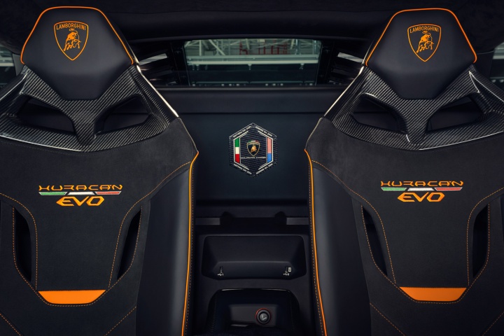 Inside, the GT Celebration has Alcantara upholstery with contrast stitching in the same colour as the exterior livery, and a hexagonal plate with shield, flags and laurel that is sited between new racing seats. Powered by the V10 engine as used in other Huracans, the GT Celebration is for the North American market only.