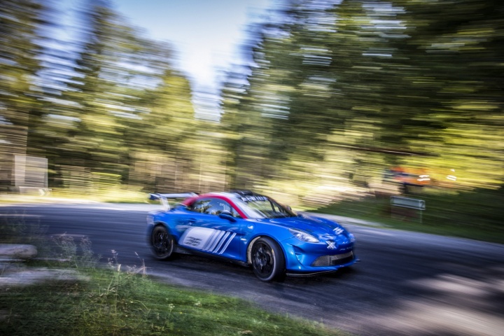The A110 Rally is designed and developed by Signatech, and features the same aluminium chassis as the GT4 and Cup, derived from the road-going model. Modifications to make the Rally meet international specs include three-way hydraulic suspension, bigger Brembo brakes and items such as an FIA-homologated rollcage, Sabelt bucket seat and six-point harnesses.