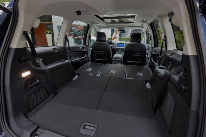 Both cars get mild styling tweaks to the front end, with more chrome, a mesh grille insert for the ST-Line versions and satin chrome trim for posh Vignale models. You can also, optionally, pick 19-inch ‘Premium Luster (sic) Nickel' alloy wheels. All the back seats flip and fold in 32 different configurations and both cars have second and third rows that can be tumbled flat from a handle in the boot. The Galaxy also gets optional power-folding for the third row.
