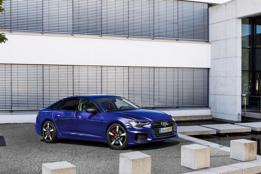 The S line exterior package, the black styling package, black exterior mirror housings and privacy glazing enhance the exterior. Matrix LED headlights, sport seats, four-zone automatic air conditioning, the Audi virtual cockpit, sport suspension, 19-inch wheels and red brake calipers add further accents.