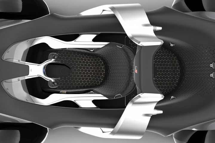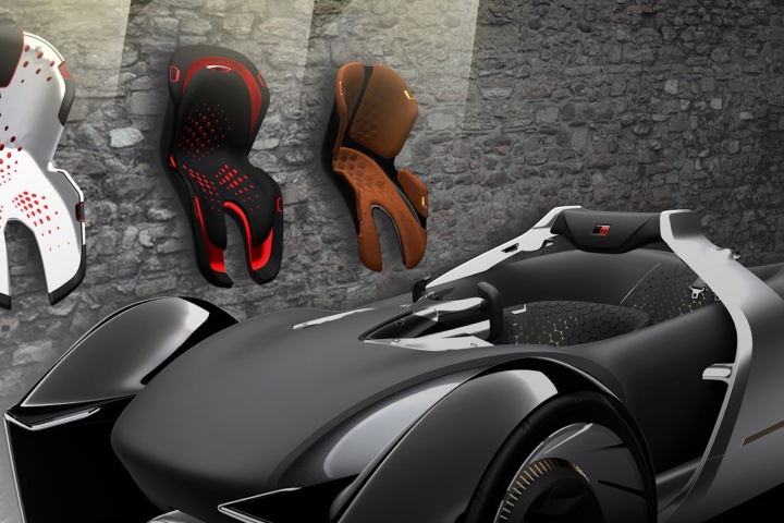 Placed next to the e-Racer is a machine capable of capturing a person's exact measurements and create a race suit that will fit them perfectly. The tech can also be applied to create a seat that provides a bespoke fit for them, just like the way Formula One drivers' race seats are moulded to their body.