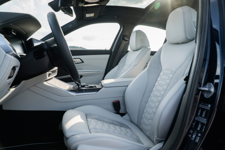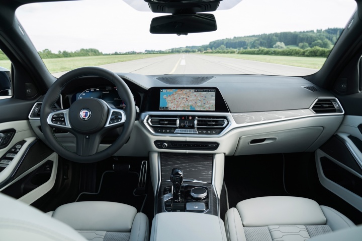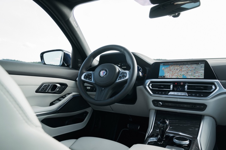 In comparison to the standard BMW 3 Series, the interior of the Alpina B3 is mostly unchanged. The company does offer unique upholstery designs on the seats, and any BMW badging is replaced with the Alpina logo. There's also a neat plaque on the centre console with the model designation on it. The eagle-eyed read will also spot that the Eco Pro mode button has been removed because this is an Alpina and going fast is what it's all about.