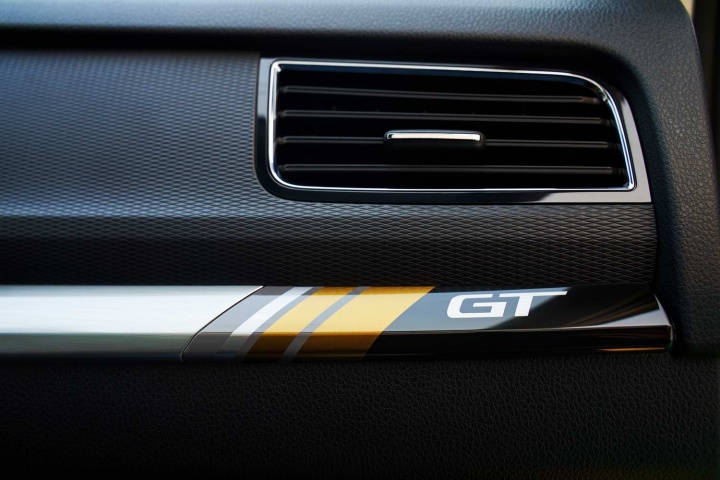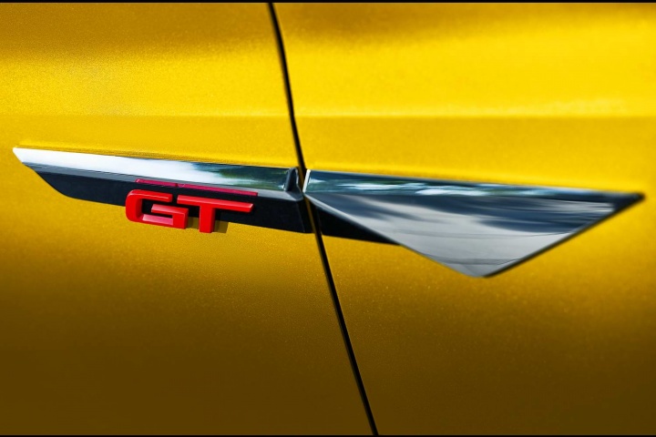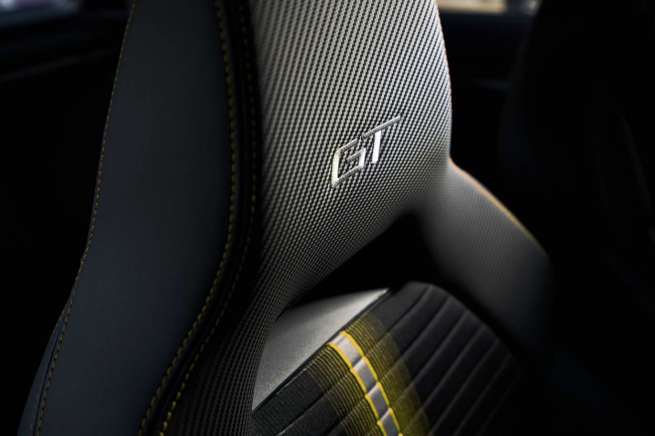 High-backed and heavily bolstered sport seats feature the GT logo in the headrests and vibrant horizontal striping along the centre in addition to contrasting stitching. The colours carry through to the dashboard fascia inserts that include GT badging. Buyers will have the option of adding a panoramic glass roof and will also be able to choose different colours for the contrasting roof that includes silver roof rails.