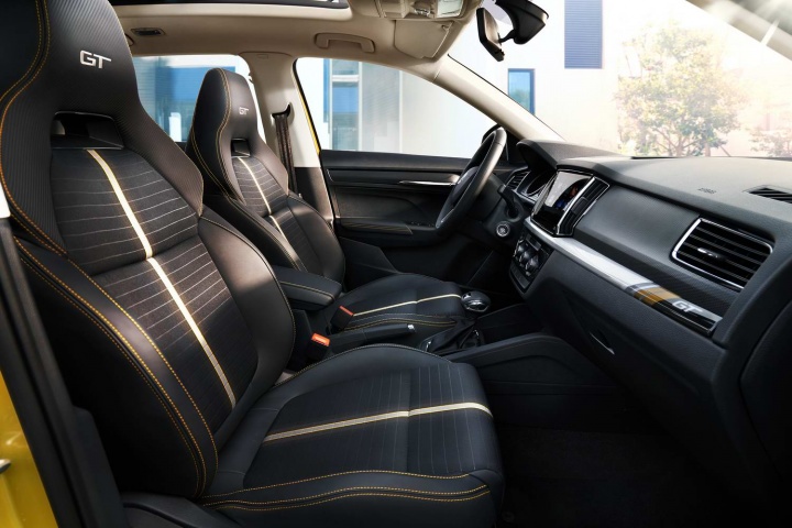 The Skoda Kamiq GT will be available with two petrol engines when it goes on sale. The first is a 1.5-litre MPI unit that produces 111hp and a maximum torque output of 145Nm, coupled with a six-speed automatic gearbox. A second 1.2-litre TSI turbocharged petrol engine produces 115hp and slightly more torque at 200Nm and sends power to the front wheels via a seven-speed DSG automatic transmission.
