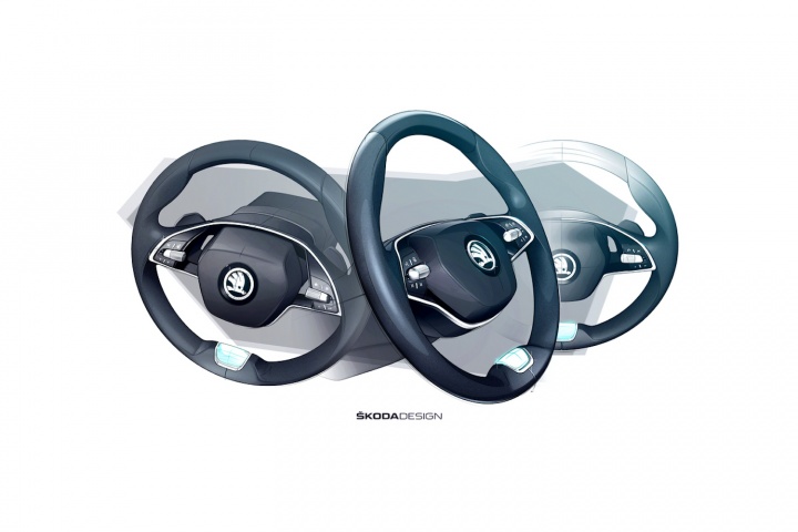 From these interior sketches, we can see that the Octavia takes the basic layout from the Scala and the recently-updated Superb and pretty much runs with it. The images shows a dash that bulges out noticeably to form the centre console, with a free-standing touchscreen (which should be available in sizes of up to ten inches) on top. Down low on the console, we can see the new compact rocker switch for the DSG dual-clutch automatic gearbox, although there will of course be more conventional manual versions too.
