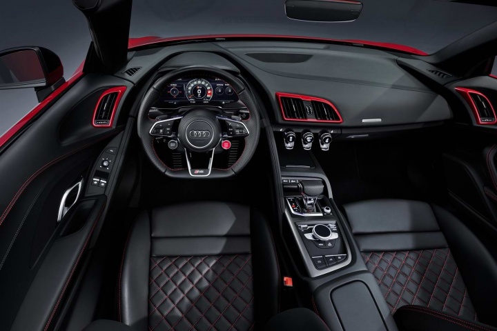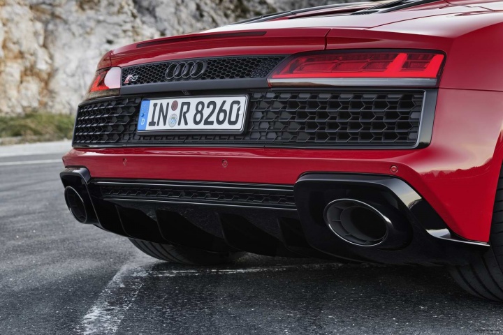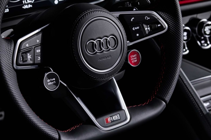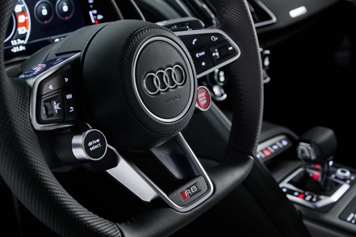 One of the last of the great naturally-aspirated supercars, the R8 RWD keeps its 5.2-litre FSI V10 engine, which develops 540hp at a screaming 6,500rpm. There's also 540Nm of torque, and that's delivered to the rear wheels via a seven-speed S-Tronic dual-clutch gearbox. That's less power than the quattro four-wheel drive R8, but you won't hear us complaining - 0-100km/h comes up in just 3.7 seconds, and it'll run on to a top speed of 320km/h, law and space allowing.
