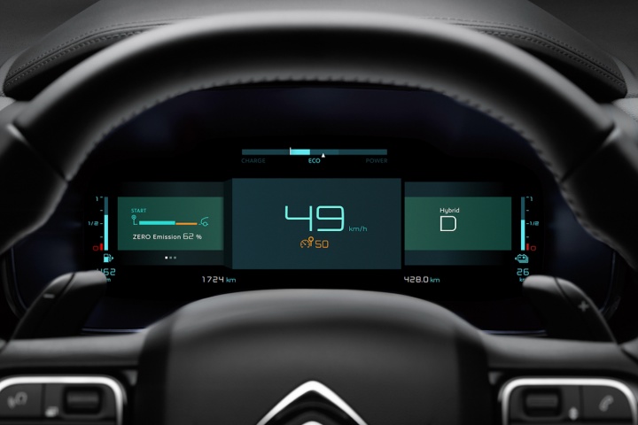 There's also an e-Save setting, selected on the eight-inch touchscreen, which allows you to pre-set a desired battery charge to be saved for when you get near to your (presumably urban) destination. You can set it for ten or 20 per cent, or for a full battery, and the C5's brain will work out the best and most efficient way to achieve that as you drive.