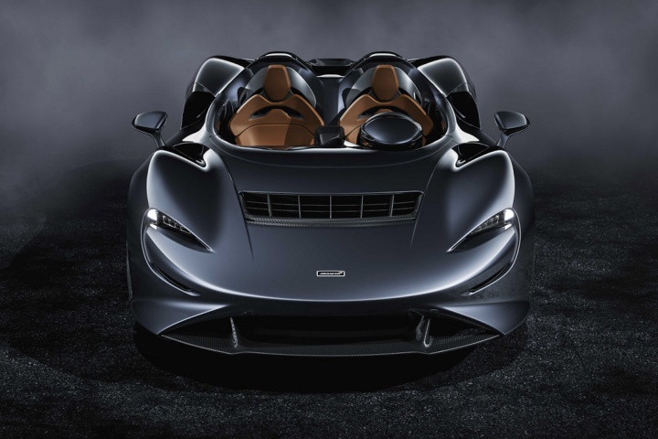 The carbon-fibre chassis is bespoke to the Elva, and the 4.0-litre twin-turbo V8 shared with the rest of the McLaren lineup. Here it's in 815hp form, and McLaren says that's enough to shove the Elva to 100km/h from rest in under three seconds. heck, to get to 200km/h takes just 6.7 seconds. It's basically the engine from the Senna in a slightly different state of tune, and drives the rear wheels through a seven-speed paddle-shift gearbox.