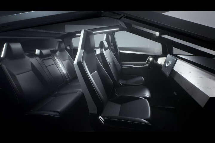 The cabin uses a similar minimalist aesthetic to that of the Tesla Model 3, with all of the instrumentation and infotainment taken care of by a huge 17-inch touchscreen in the centre of the dash. There's seating for six, thanks to a central jump-seat in the front row.