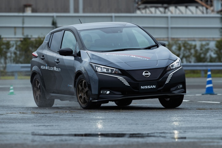 Nissan displayed its zero-emission crossover Ariya Concept, on which you can watch a video right here on YouTube, as the show car for e-4ORCE in the booth at CES, but it also used a technology test car in the form of a Leaf for dynamic displays in Las Vegas.
