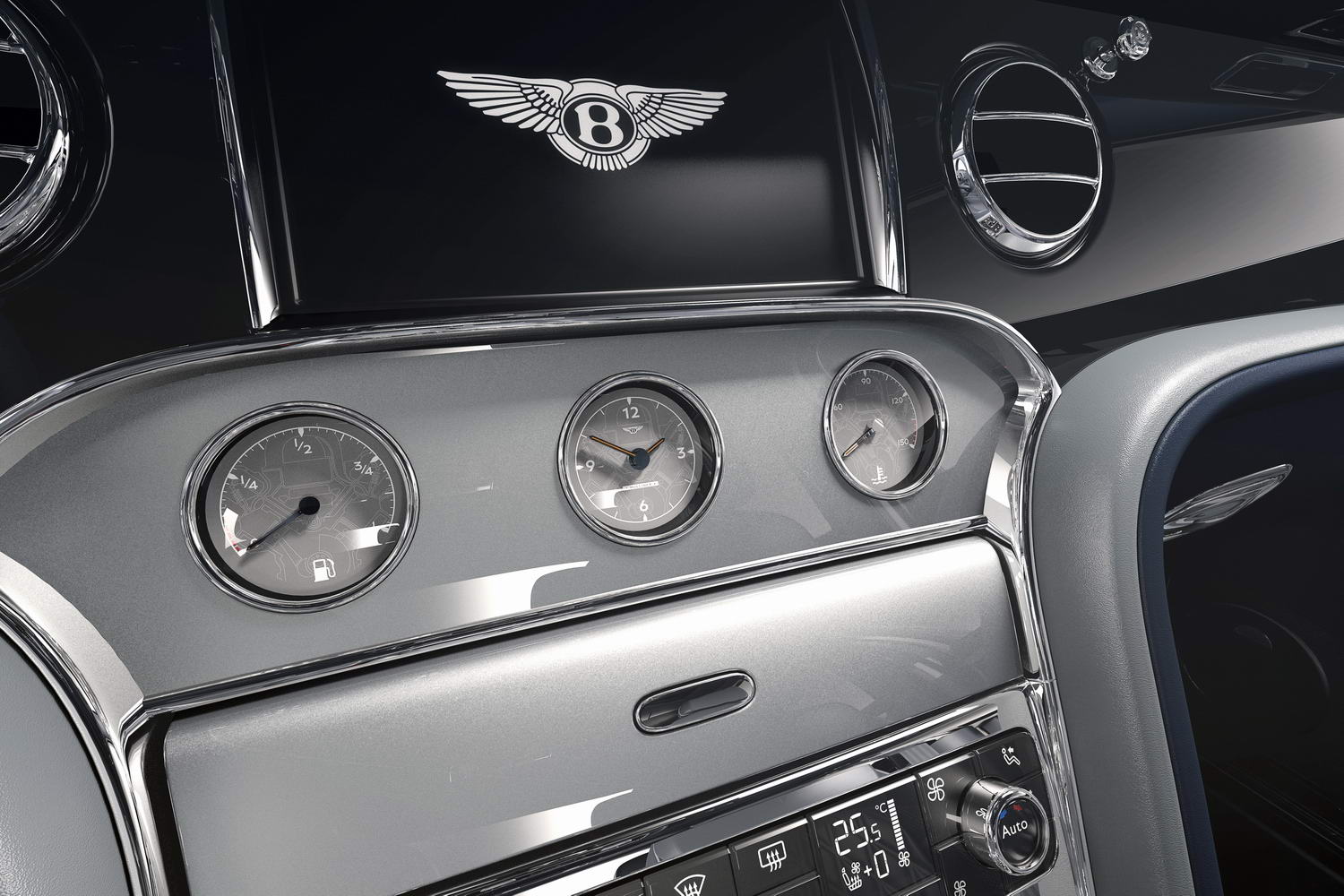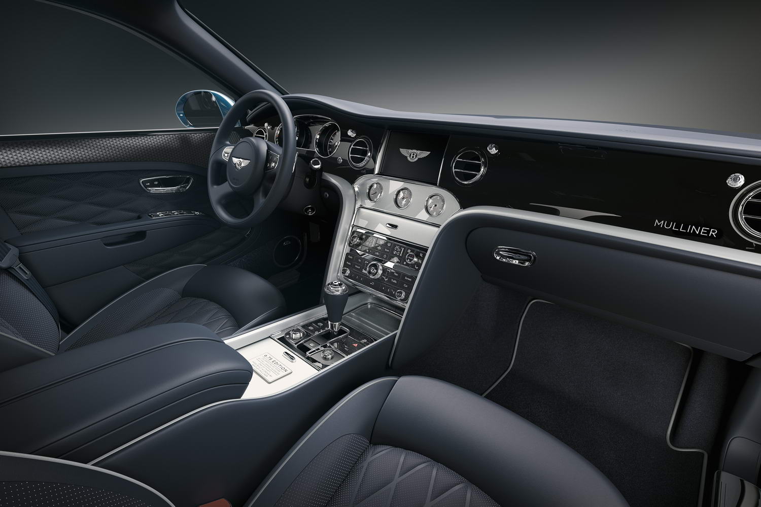 There's extra chrome on the outside, some of it in a dark tint, and 21-inch five-spoke Mulsanne Speed wheels in a bright-machined finish. Underneath the bonnet, the engine intake manifold is finished in a retro black (it's usually shiny alloy) and the engine number plate is signed by Bentley's Chairman and Chief Executive, Adrian Hallmark.