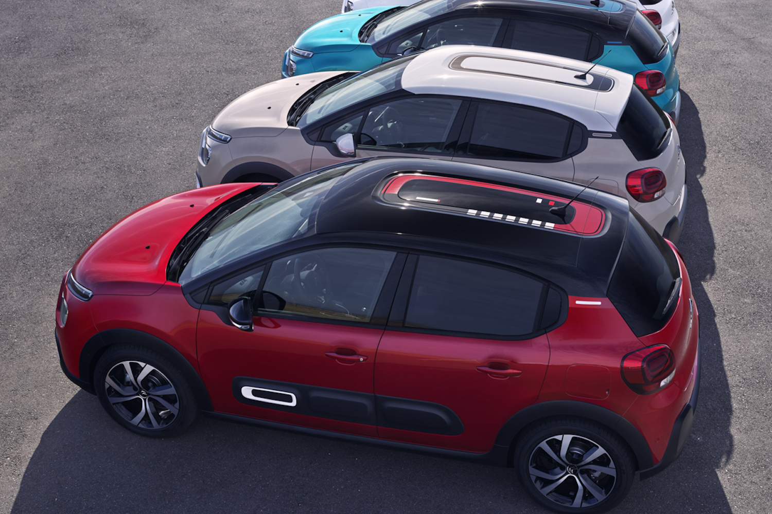 Citroen says that the updated C3 comes with more customisation options, including a total of 97 possible colour, roof and Airbump choices, along with alloy wheels of up to 17-inch diameter. Of the seven body colours, two are new - Elixir Red and Spring Blue - in addition to Perla Nera Black, Cumulus Grey, Platinum Grey, Soft Sand and Polar White. You can also choose some stick-on graphics for the roof, including such themes as Red, Techwood and Emerald.