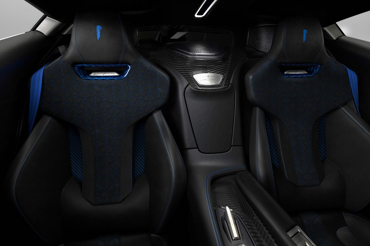 All five of the Battista Anniversario cars will feature the 'Furiosa' pack that includes a carbon fibre front splitter, side blades and rear diffuser. In this case, these parts will carry a two-tone combination of exposed carbon and carbon that is tinted in Iconica Blu with Bianco Sestriere pin stripes. The cars receive a bespoke rear wing and rear aero fins among other unique details. These include centre-locking forged aluminium wheels that shave 10kg off the overall weight despite the rears increasing in size to 21 inches.