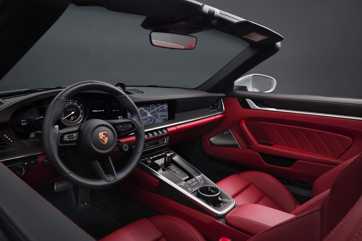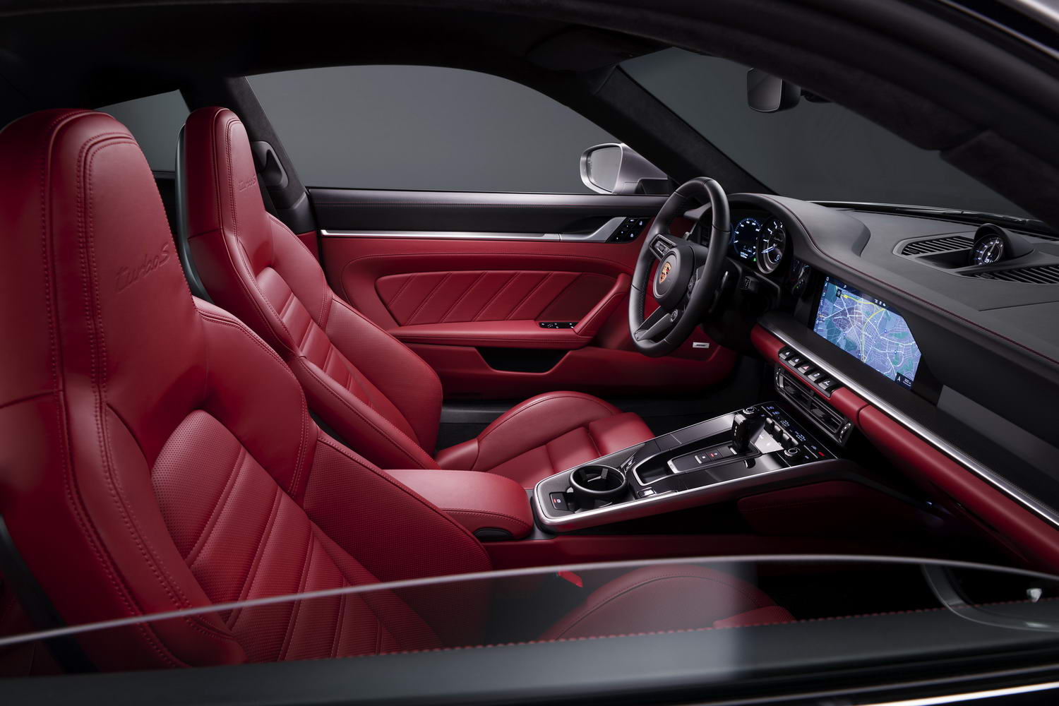 Inside, the cabin pays homage to the look of the original 'Type 930' 911 Turbo through its stitching, and there are 18-way adjustable sports seats in full leather as standard. The instrument cluster gets specific graphic elements and logos to remind you that you're in the Turbo S and not the Carrera, while all of LED Matrix headlights, the GT Sports steering wheel, the Sport Chrono package with the Porsche Track Precision app and a Bose Surround Sound System are standard equipment. Options will include a sports chassis that is lowered by 10mm and a sports exhaust system for naughtier sounds.