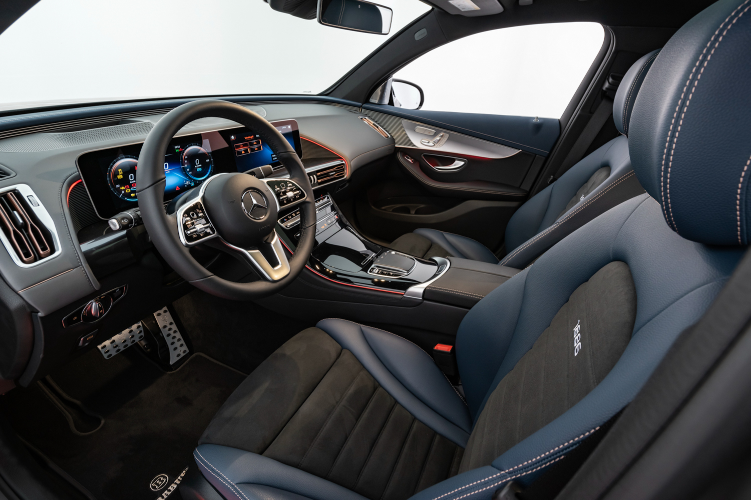 Its team of software specialists have managed to extract more power from the EQC's electric powertrain. Peak torque output rises from the standard car's 760Nm to 830Nm and from 408hp to 422hp. Although the car's top speed remains electronically limited to 180km/h, the acceleration from 0-100km/h is cut from 5.1 seconds to 4.9 seconds. Brabus hasn't said if the upgrade kit has much of an impact on the car's driving range, though we suspect that more power and increased acceleration may knock a few kilometres off the 417-kilometre range of the regular EQC.