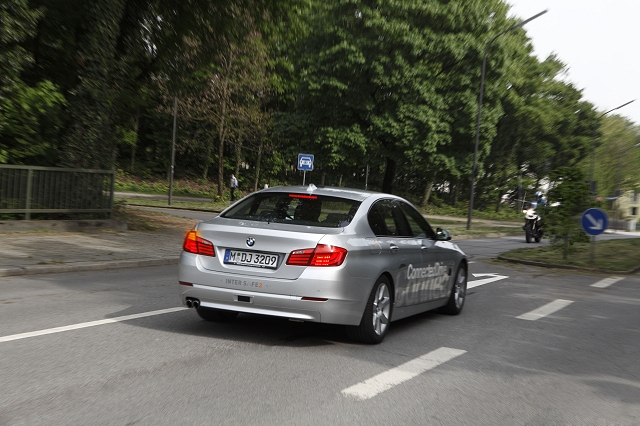 BMW is showing off the turn assist system at Intersafe 2 this week in Wolfsburg, which is a leading technology forum. Rather than simply show off the system in a controlled environment, BMW will display turn assist on a real road to prove its usefulness.