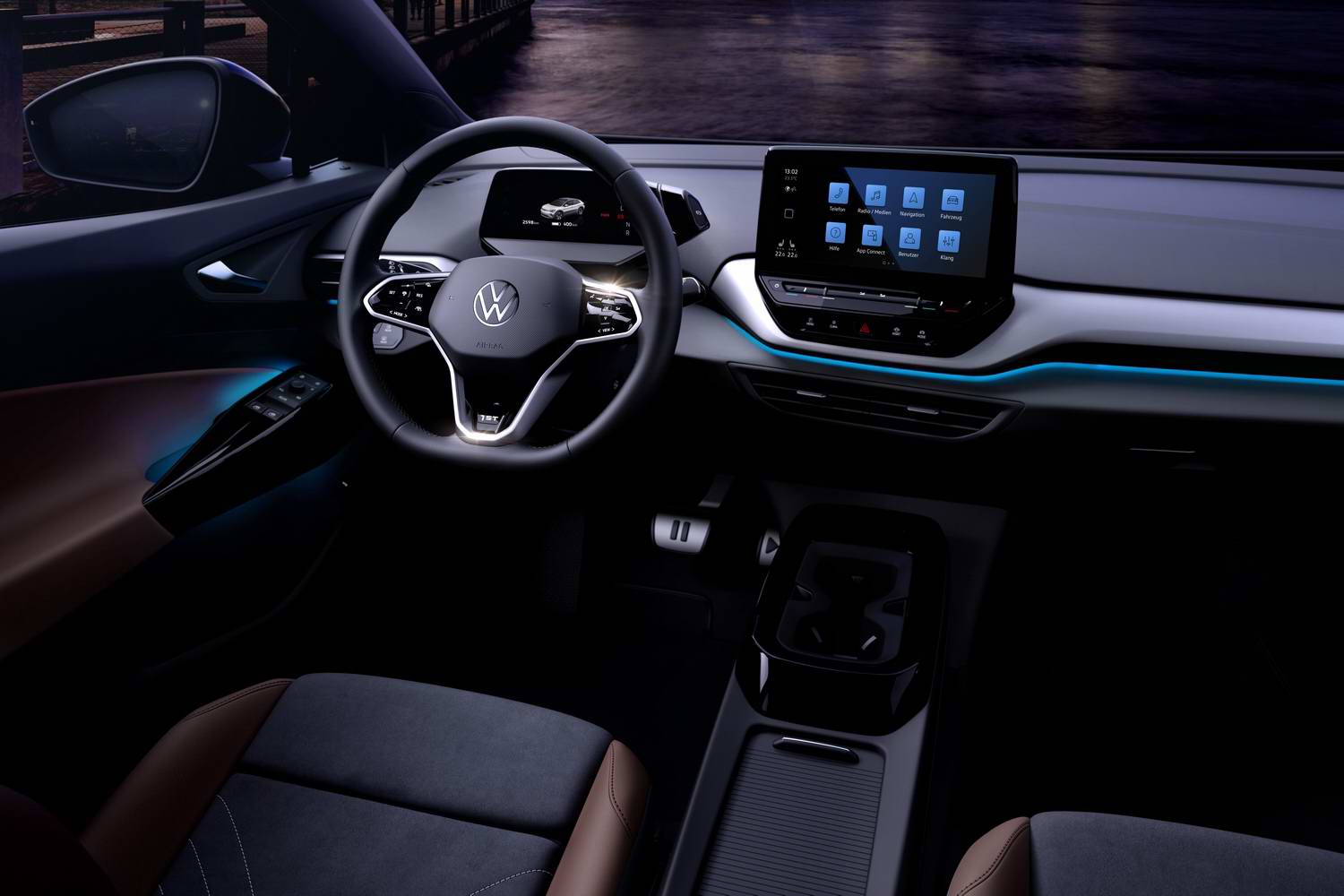 New electric Volkswagen SUV interior is attractive and roomy.