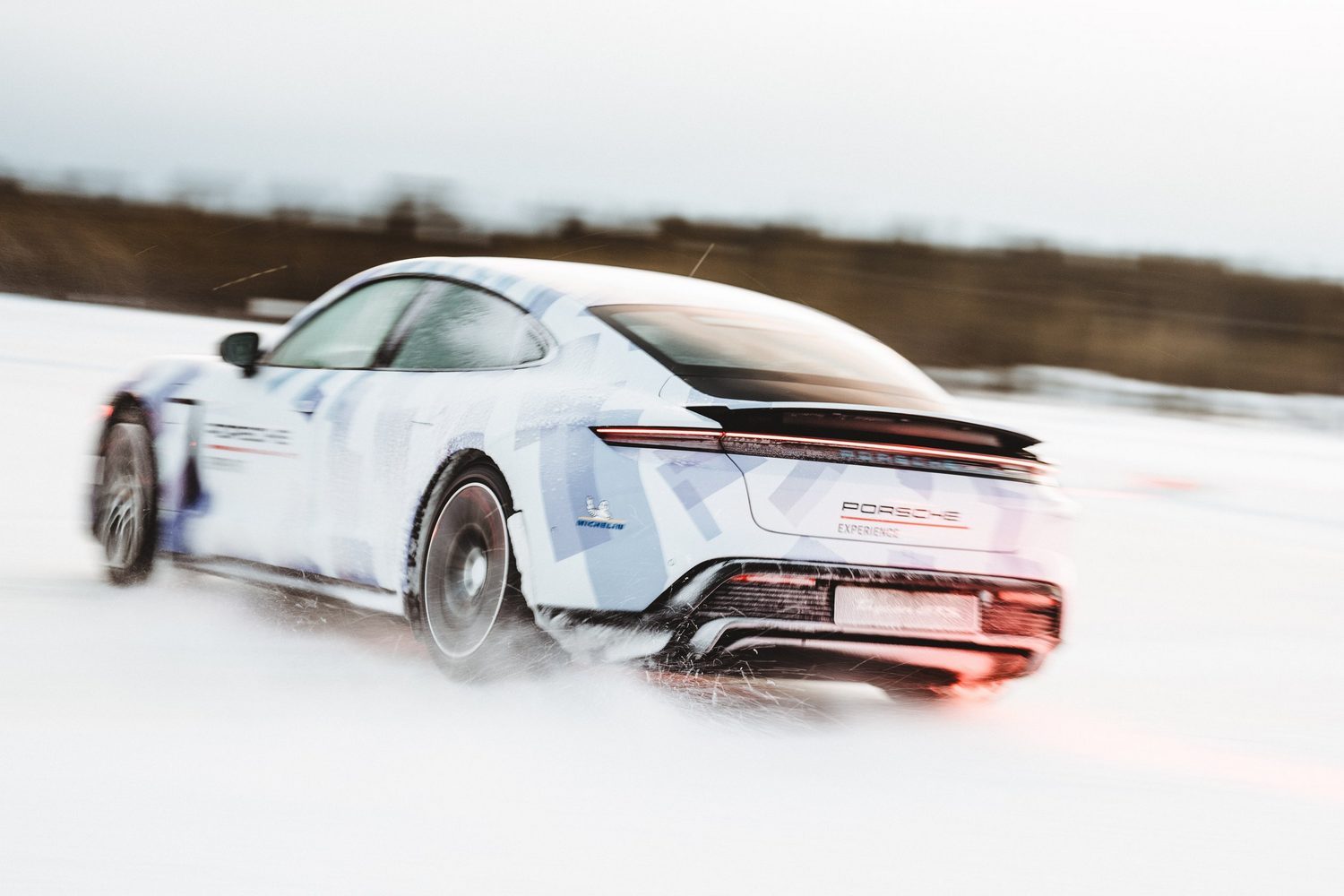 Porsche Taycan GTS drifted continuously for 17.5km on a frozen lake.