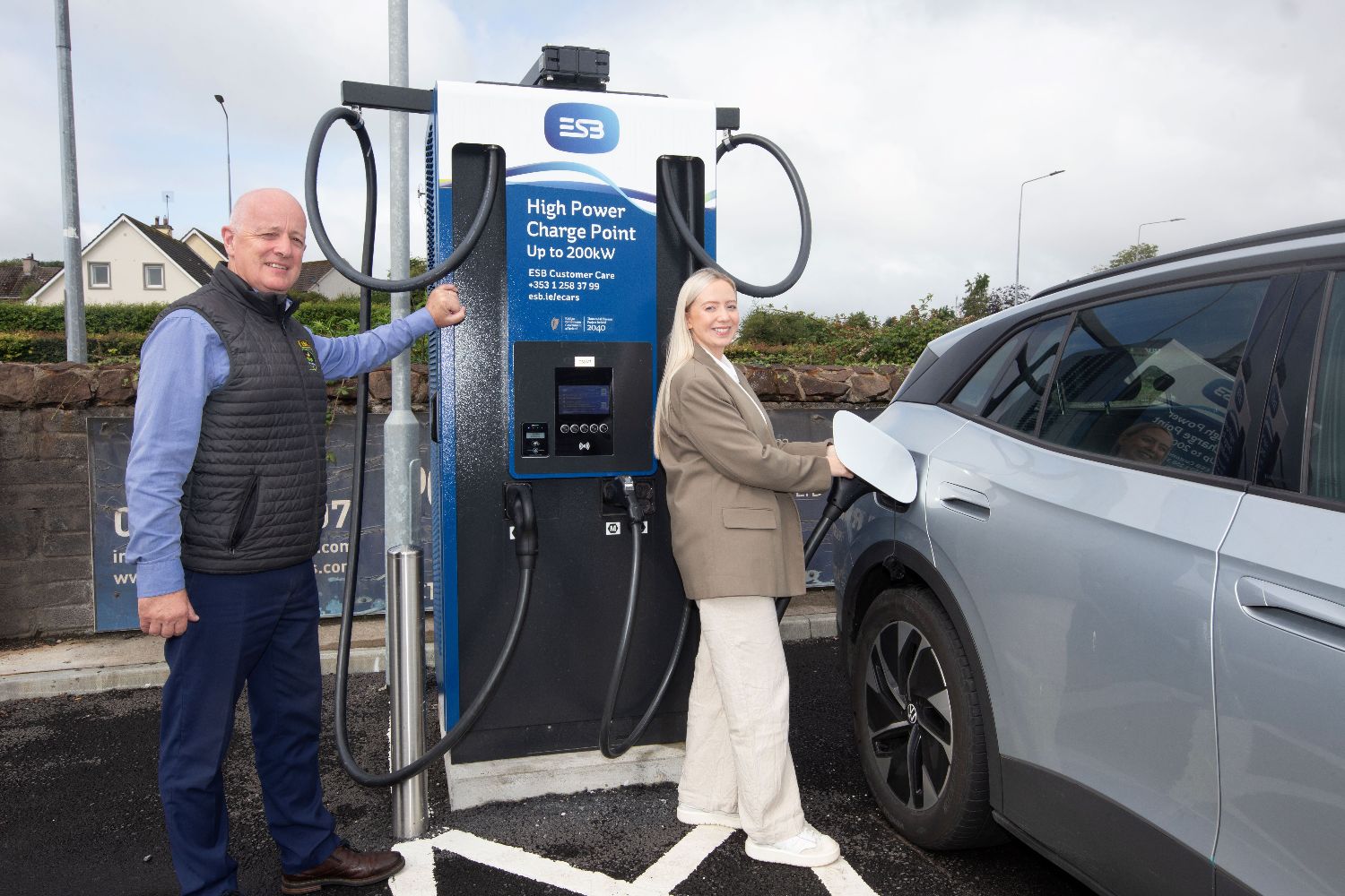 New ESB EV high-power charging hub opens in Collooney, County Sligo.