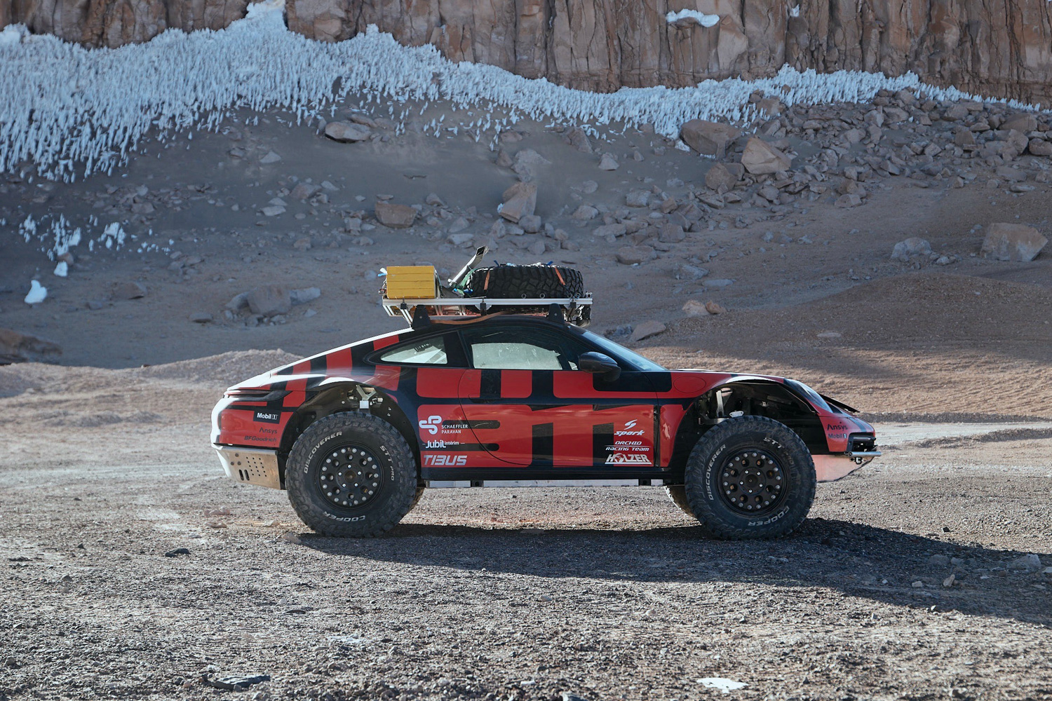 Off-road modified Porsche 911 climbs the tallest volcano in the world.