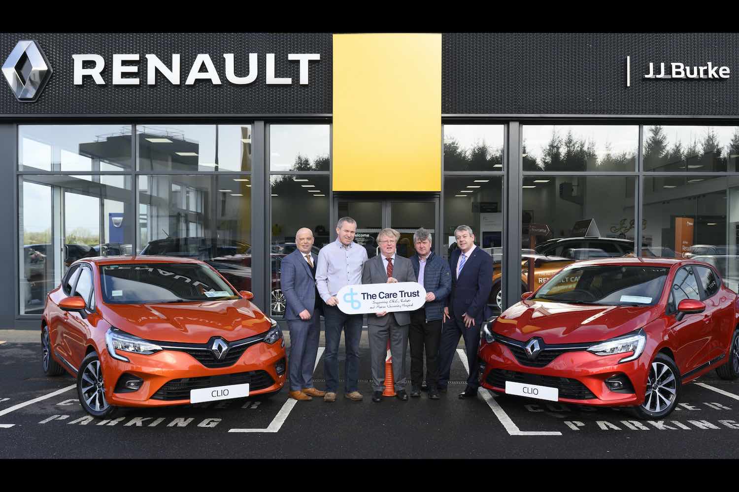 First winners of The Care Trust charity lotto get on the road in their new Renault Clios.
