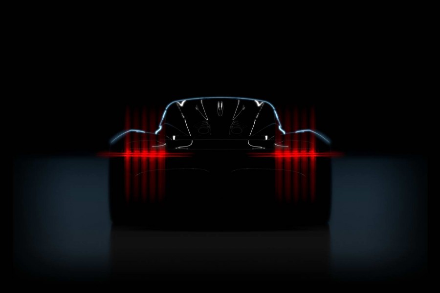 A single teaser image previews the Aston Project 003 supercar.