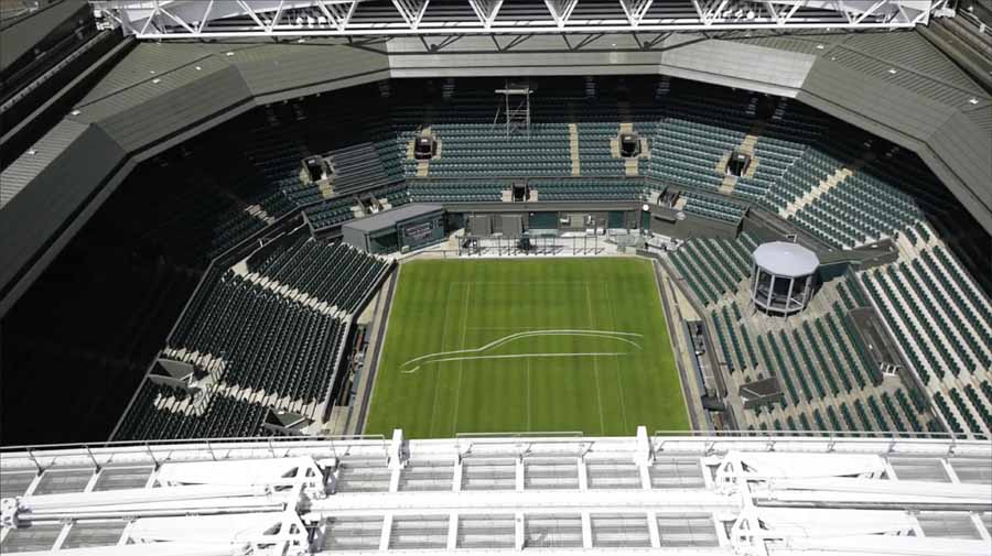 New Jaguar XF Sportbrake estate first shown (in a manner of speaking) at legendary tennis venue.