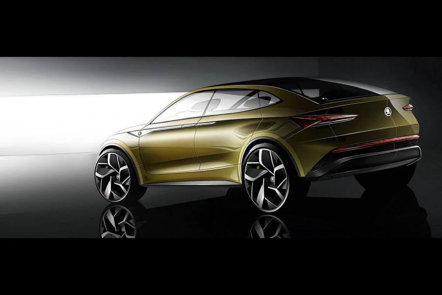 Skoda Vision E study previews a 500km electric SUV for 2020.