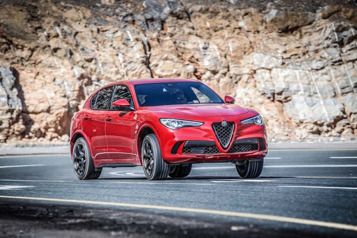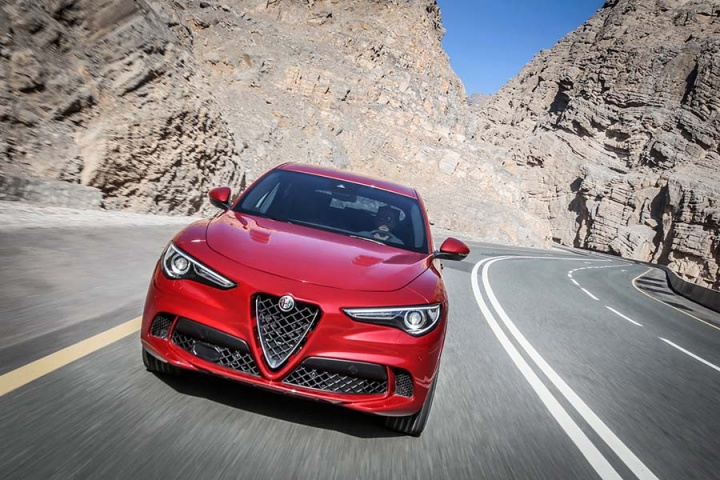 However, the answer for this waywardness soon became apparent - we were driving it on a road glossed over with a sheen of sandy dust. Once onto one of the world's greatest driving routes, a mountain switchback called Jebel Jais in the Middle East, there was more shelter from the elements, less sand and so far, more grip. And, from this point on, the Alfa proves it is a total dynamic delight. Roaring up the hill, it has a poise and delicacy wholly at odds with its big, bulky body, turning in keenly and finding great drive mid-bend to fire out the other side at considerable velocity. The Stelvio Quadrifoglio doesn't quite have a 50:50 weight distribution so there's a touch of nose-led cornering about it if you're too quick into the curves, but keep it on the throttle and the Q4 manages to shunt the torque about the place to ensure the car dials in to a handling line that's all about balanced neutrality. It'll even oversteer in a controlled, enjoyable fashion if you jab the throttle at the right moment of transition from corner to straight.