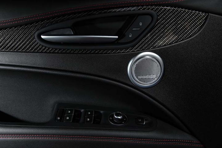 The Alfa Romeo Stelvio Quadrifoglio is priced from €118,795. The standard specification includes 20-inch alloy wheels under re-profiled wheel arches, a restyled rear diffuser, sports exhaust with four outlets, bi-Xenon headlamps with LED daytime running lights, a leather dashboard and door tops, leather and Alcantara seats, leather steering wheel, carbon fibre trim and stainless steel pedals, plus an 8.8-inch Alfa Connect infotainment system, with Apple CarPlay and Android Auto. Safety items includes Autonomous Emergency Braking, Lane Departure Warning, Blind Spot Monitoring, Forward Collision Warning and a rear-view camera with guide lines.