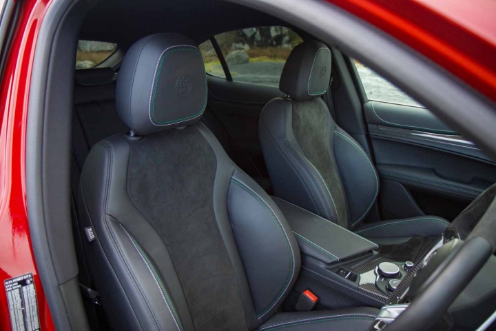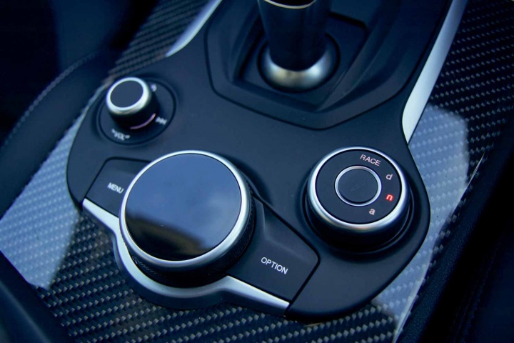 Considering its premium price tag, there is little extra to the build quality over the regular Stelvio in the Quadrifoglio. That means some below-par plastics and a rotary controller for the (non-touchscreen) infotainment system that feels as if it's almost ready to pop off in your hand. These are things that some Alfa apologists may claim to be 'part of the experience', but in any car costing this much, that's just not going to fly.