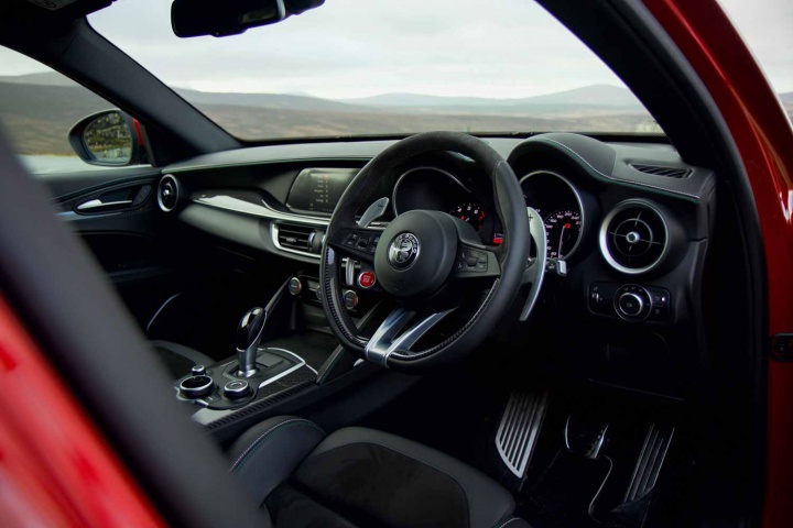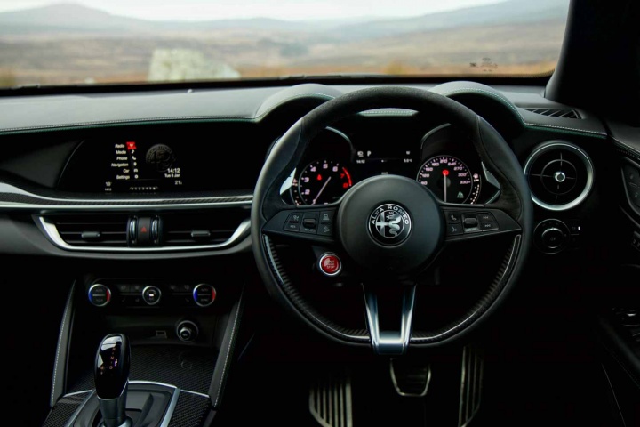 The only reason you're likely to want to buy Alfa's SUV range-topper is for that blown 2.9-litre V6. It does have more of a job to do in the Stelvio than the Giulia due to its 1,830kg heft. You will have to work it a bit harder, but using the paddles to get down the gearbox goes some way to recreating the raucous exhaust note.