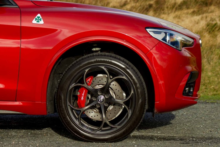 Looks are subjective, but we can't ignore the fact that, despite the Alfa wearing some fetching 20-inch wheels that channel the classic Teledial design, the Stelvio QV looks as if it still has the transport blocks in place, such is the size of the gap in the arches. It may benefit those considering a venture off-road, though quite how little traction the 245/45 section Pirelli P Zero tyres are likely to offer somewhat nixes that.