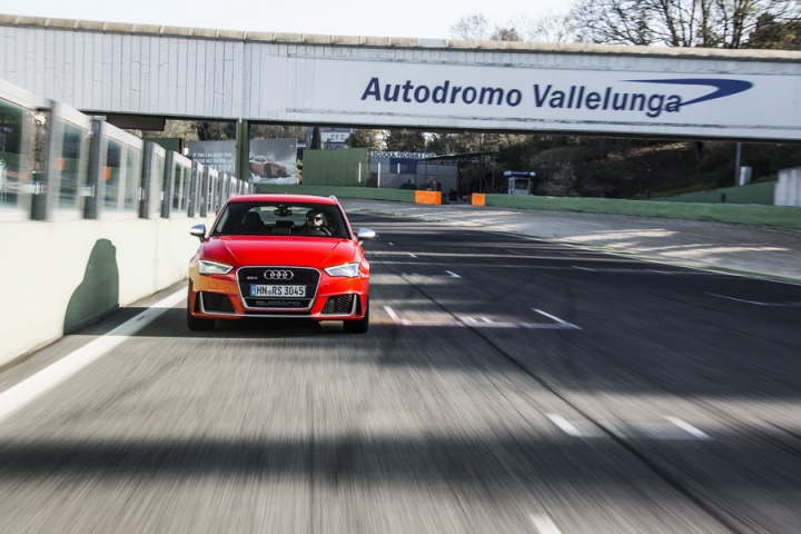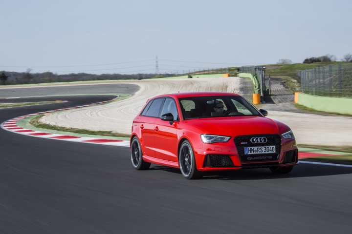The most powerful car in its class brings with it shocking pace. The Audi RS 3's turbocharged 2.5-litre in-line five-cylinder engine develops 367hp, though it's the 465Nm of torque and its huge spread - from 1,625rpm to 5,550rpm - that makes it so otherworldly quick. Get it right, or simply use the launch control, and the RS 3 will reach 100km/h in 4.3 seconds from rest. That's quicker not just than obvious rivals like the Mercedes-Benz A 45 AMG and BMW M135i, but also faster than the Porsche 911 Carrera 4 GTS.