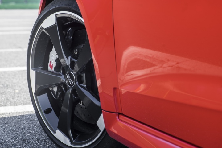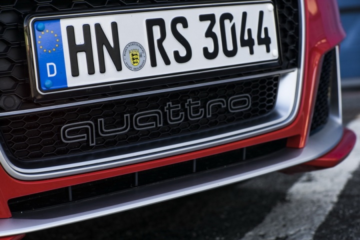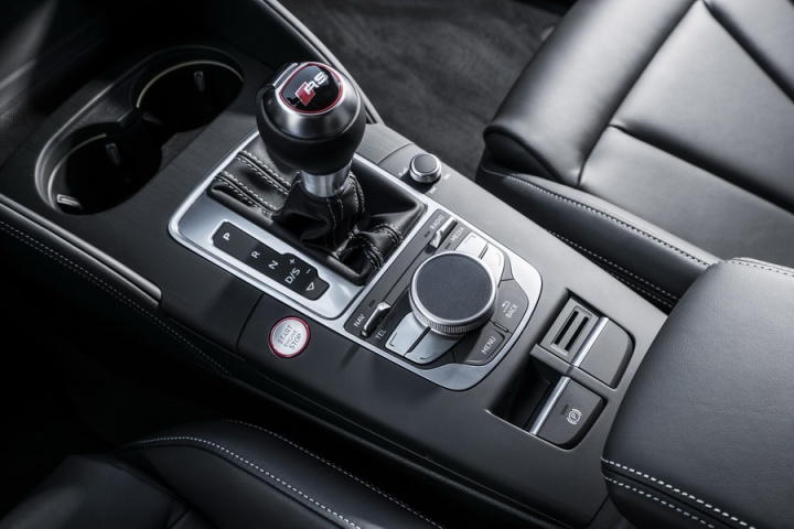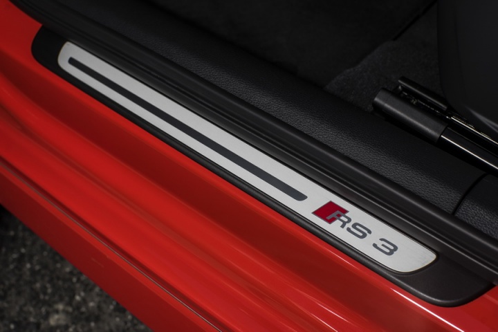 All that power drives though Audi's quattro four-wheel drive system and a seven-speed, dual-clutch, paddle-shifted S tronic automatic transmission. Four-wheel drive gives the RS 3 incredible traction, while that automatic is quick to shift up, if sometimes tardy to respond to requests for downshifts from the wheel-mounted paddles. Drive Select allows some tailoring of your drive, changing the parameters of steering, gearshift and engine response, while adding the optional Dynamic Pack means the addition of a Sports Exhaust with active bypass flaps and Audi's magnetically damped suspension.