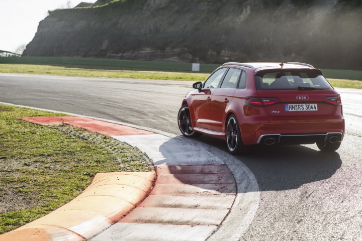 You'll want that exhaust, as it adds a sort of off-beat, intense throb under power, and cracking and popping on the overrun that sounds every bit like an Audi Group B rally car from the '80s. If the sound is enough to evoke memories of Blomqvist, Rohrl and Mouton, then so too is the RS 3's ability to cover ground. Few, if any, cars are as quick on the public road; the combination of all that grip and grunt makes for an extraordinarily rapid machine.